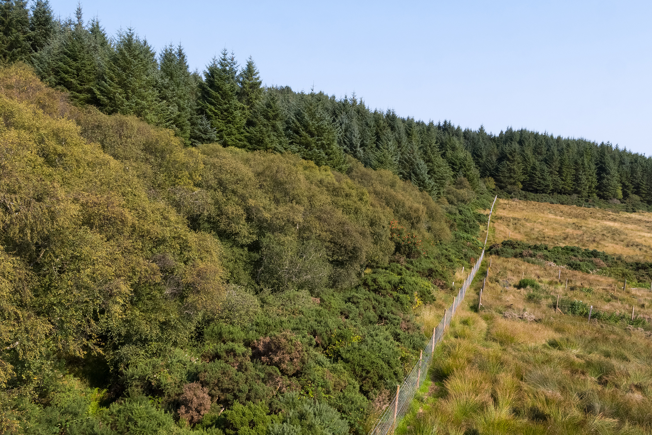 - MORE NATIVE WOODLAND: When it was acquired in 2014, Cnocan a Chorra consisted of heavily grazed pasture and spruce monoculture. In the woodland zone, felling of the spruce plantation is now well underway to make room for an augmented natural regeneration area, and mixed productive woodland planting.