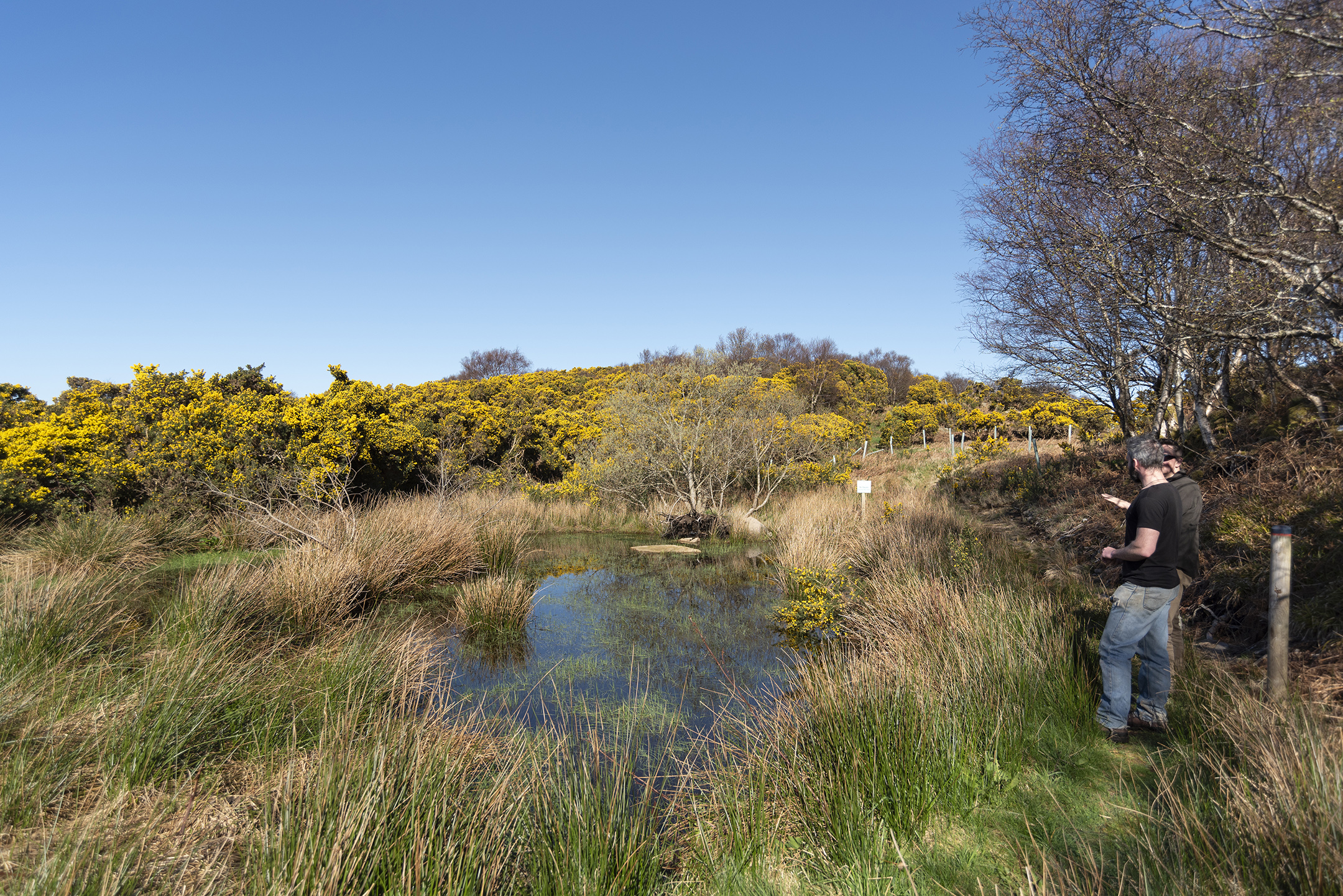 The Plock is a rocky outcrop with a fascinating history, a last toehold on the mainland on the way to Skye. In its time it has been croft land, a centre for the herring industry, in military ownership, and most recently a golf course. It is now in ownership of Kyle & Lochalsh Community Trust, and serves as a valued amenity space for both locals and tourists - a place to hike, bathe in nature, and take in the stunning views of Loch Alsh and the far Cuillin mountains. With gorse and bracken scrub, dry heath, birch woodland, peatbog, ponds and a rocky shoreline, this site provides a microcosm of habitats where nature is already bouncing back.