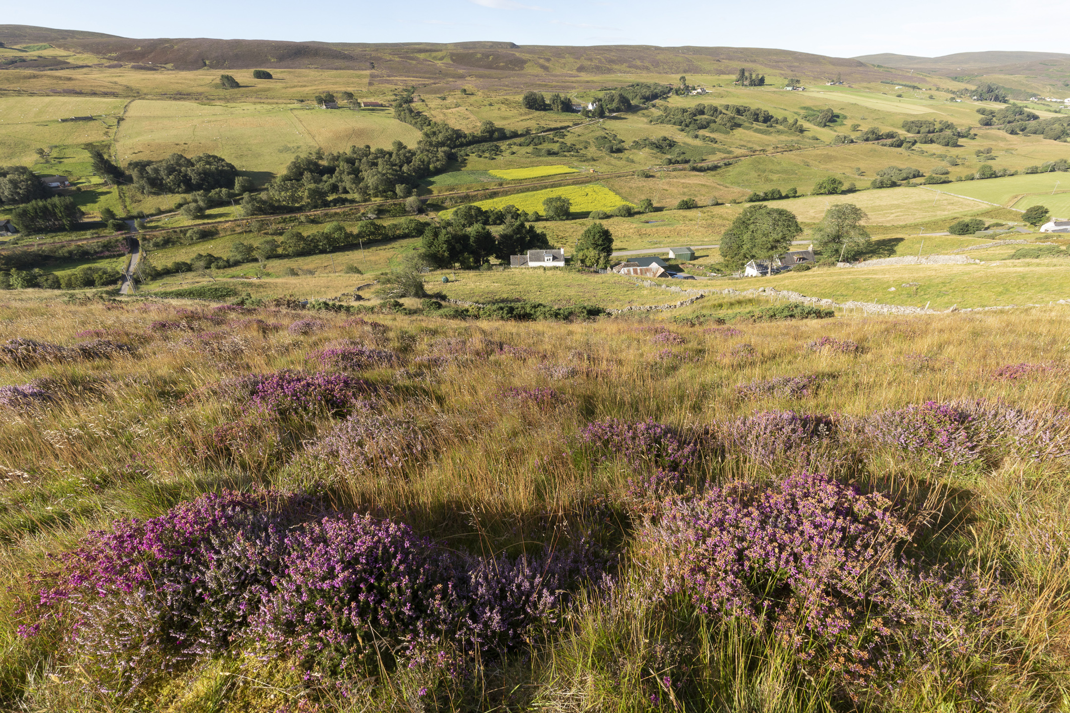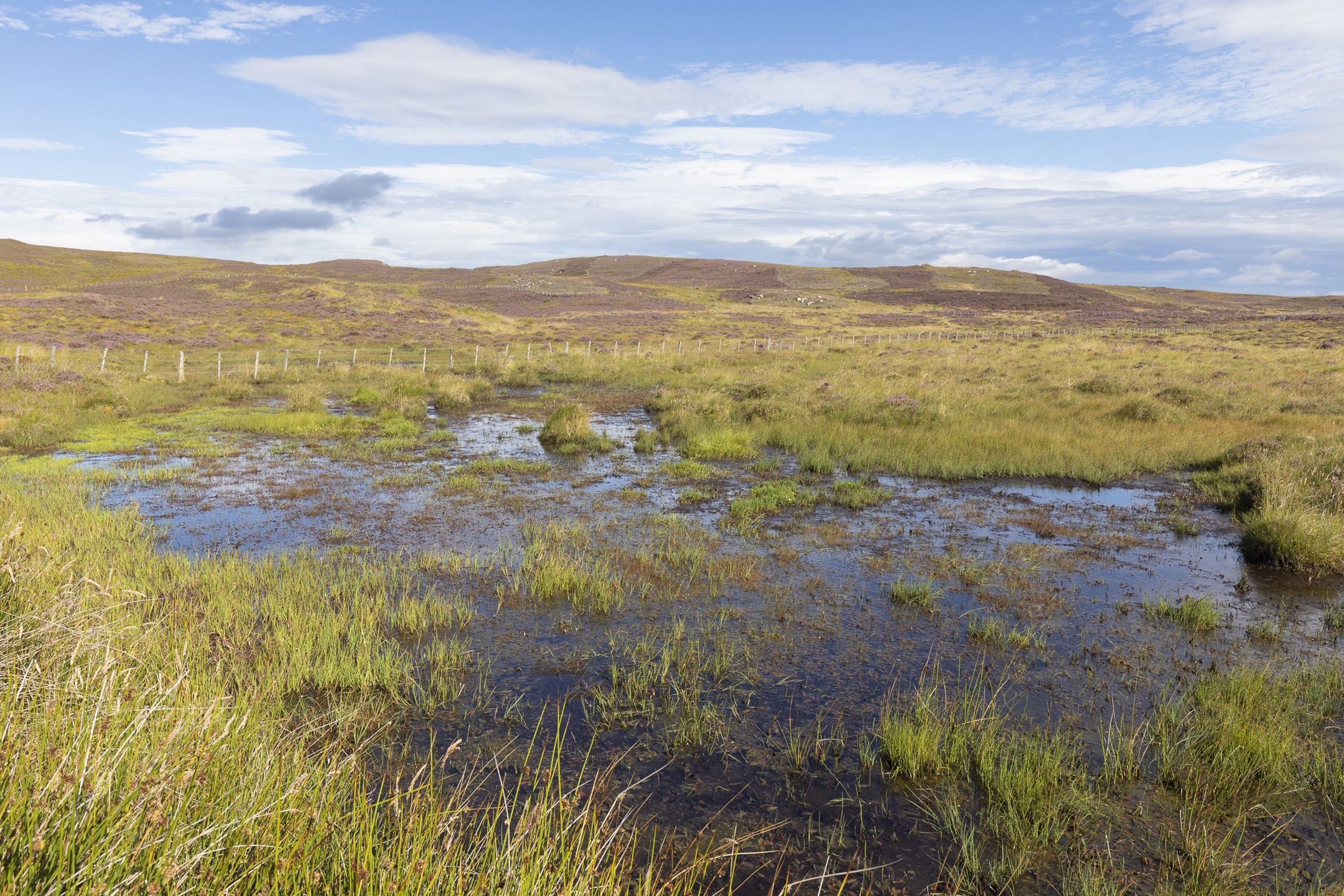 Muie Croft is situated on historic croft land overlooking the dramatic glacier-shaped form of Strathfleet. The landholding comprises tussocky pasture on the floodplain; grass, bracken and gorse on the strath’s steep slopes; and heather moorland and blanket bog on the high ground. Across the site, exposed granite boulders emerge from the vegetation, and hidden springs form pools and rivulets on the hillsides. The remains of abandoned farmsteads on the site are testament to past generations who worked the land.