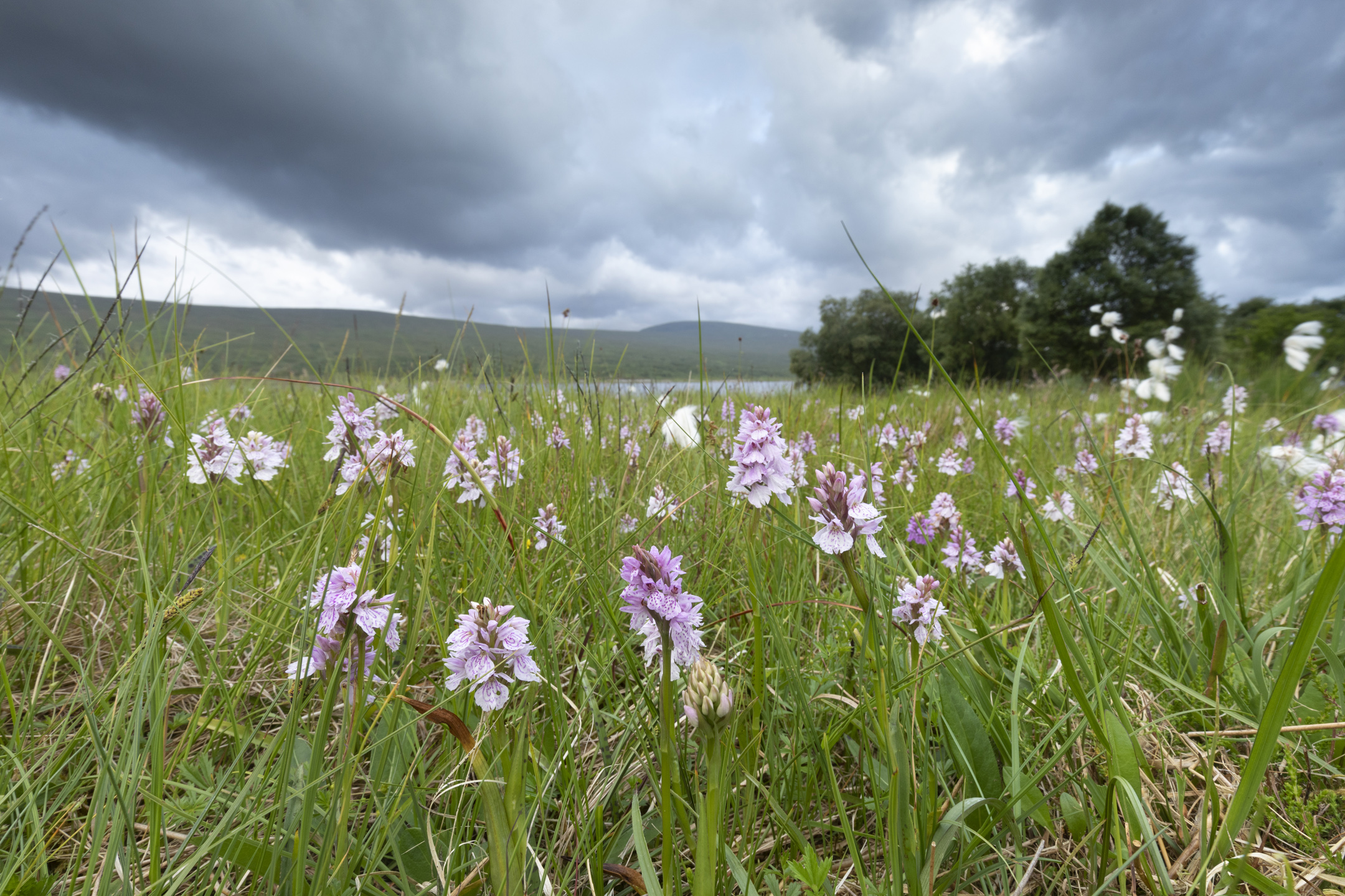 East Overscaig is situated on the north-western shore of Loch Shin in a geologically impressive landscape. The landholding surrounds on old, ruined croft house testifying to the site’s use by former generations. The land comprises a rocky loch shoreline (at low water level), naturally regenerating birch woods above the shore, and expansive heather heath and peat bog, which are bisected by the dark water of a seasonally variable burn. The owners have undertaken extensive broadleaf enrichment planting, woodland flora planting and have introduced missing tree species, but these activities remain challenging in the face of a large deer population.