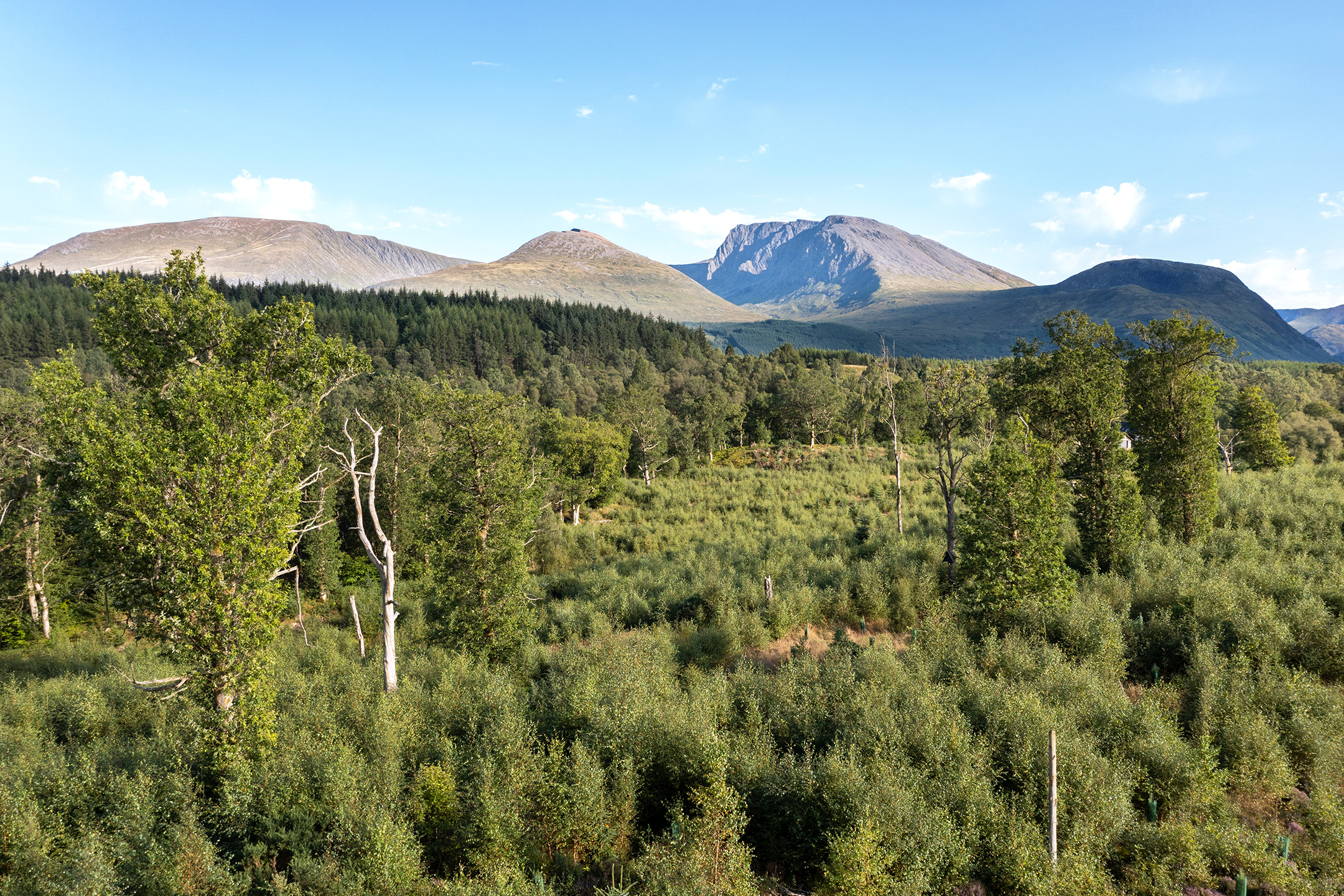 Between the Caledonian canal and the River Lochy lies Torcastle, a landholding that takes its name from an ancient ruined stronghold of Clan Cameron and where the current owners run a bed & breakfast enterprise. Above the Eas nan Long waterfalls, gorse, heather and regenerating birch trees now dominate what was once a sitka plantation; and further to the north, along a linear depression known as Banquo’s Walk, ancient Scots pines, larches, oaks and beeches reach up and form a magical woodland habitat.
