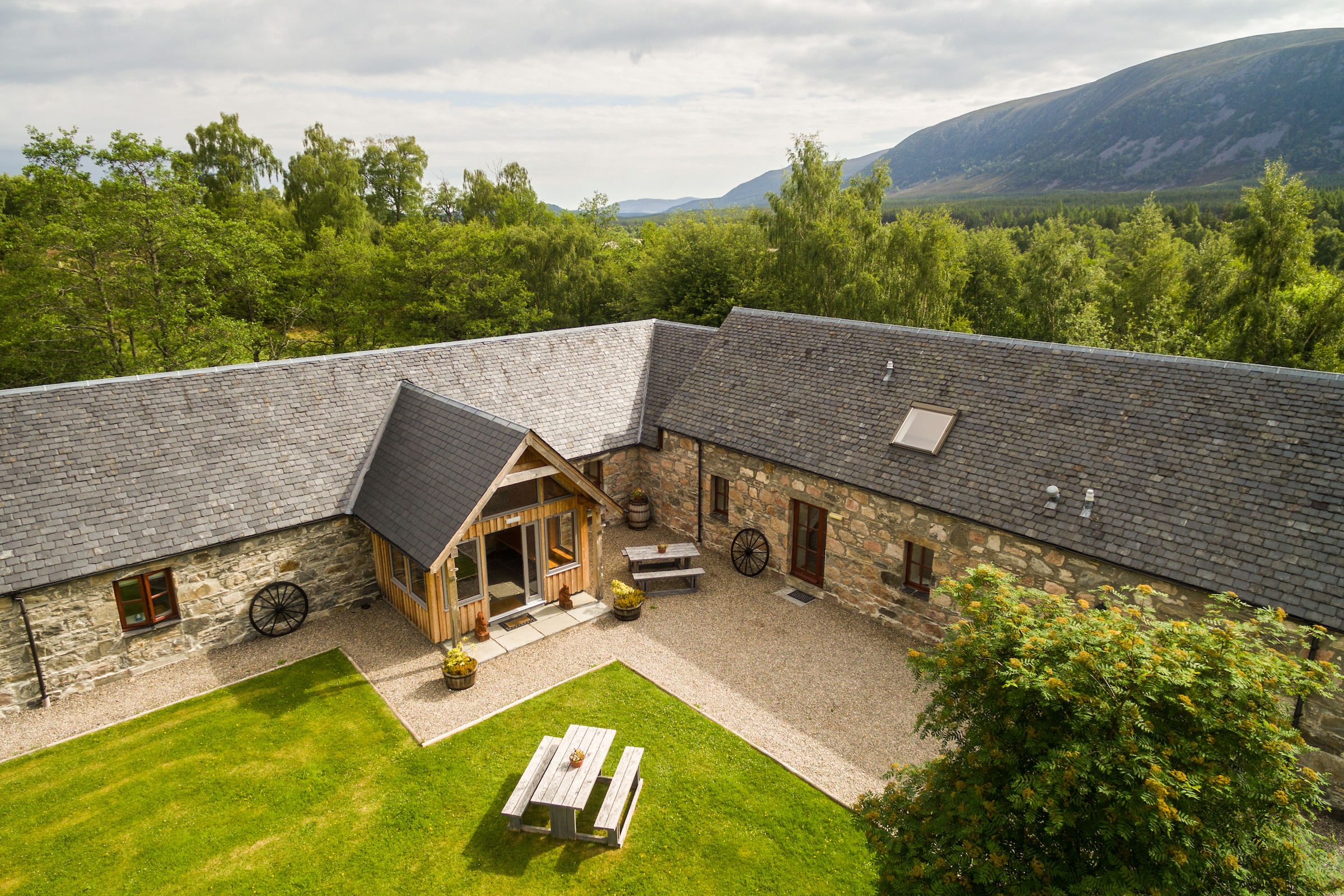 Ballintean Mountain Lodge is a beautifully converted farm steading located in Glenfeshie, near the village of Kincraig in the Cairngorms National Park.