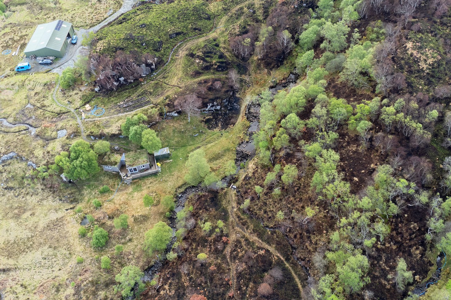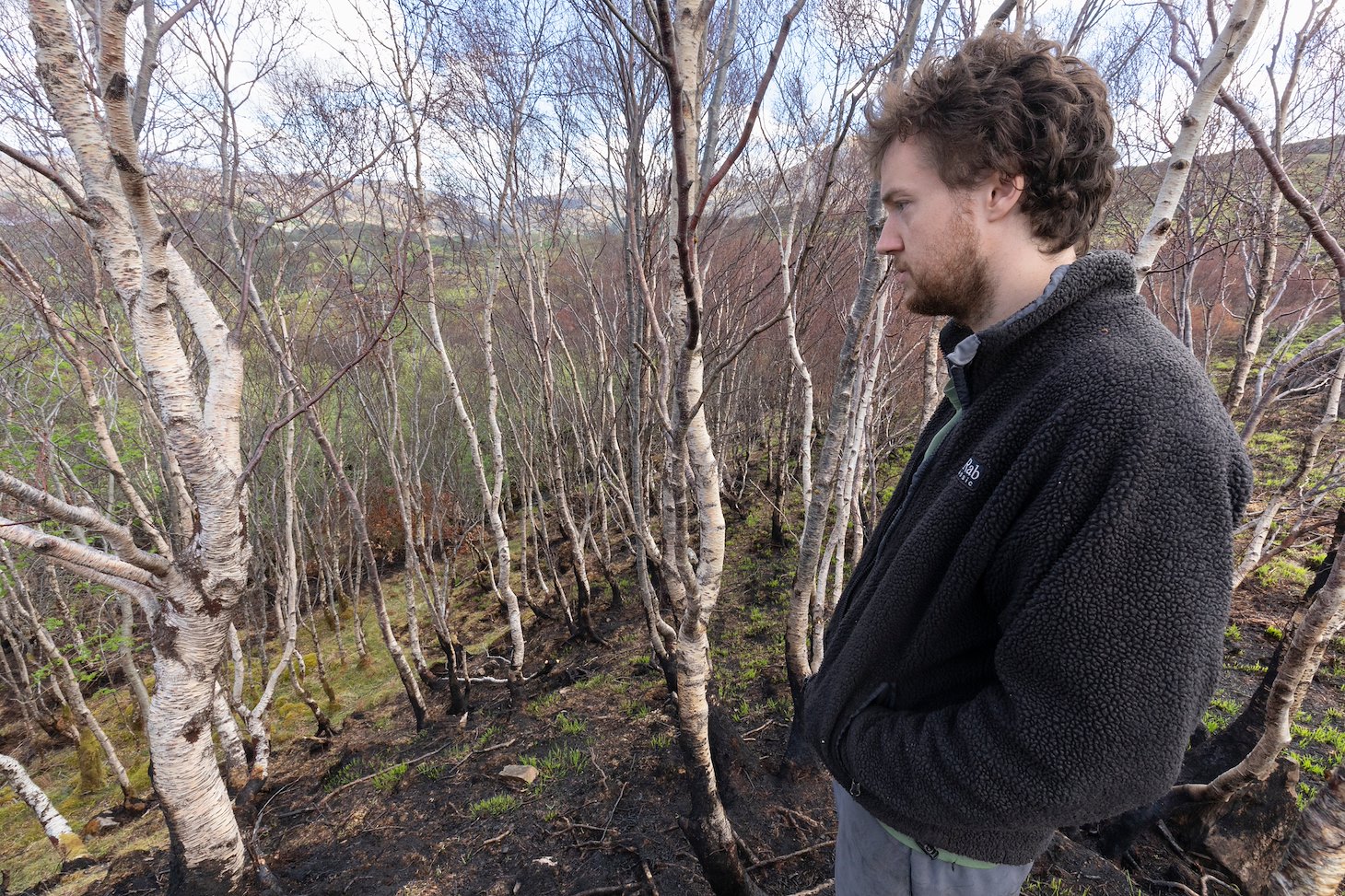 Ed and Becca were already committed members of the Northwoods Rewilding Network before the fire. Now, doubly determined to press ahead with reforesting their bit of hill, the couple plan to employ a drone to scatter birch, alder and willow seed across the burned ground. The hope is that a wood – potentially a part of the rainforest that once fringed much of the west coast of Scotland – will grow up to shield them from future fires. But establishing a resilient woodland requires time – a decade at least – and whether these young trees can ever become a fully-functioning forest, depends on whether or not anyone decides to set the hill on fire.